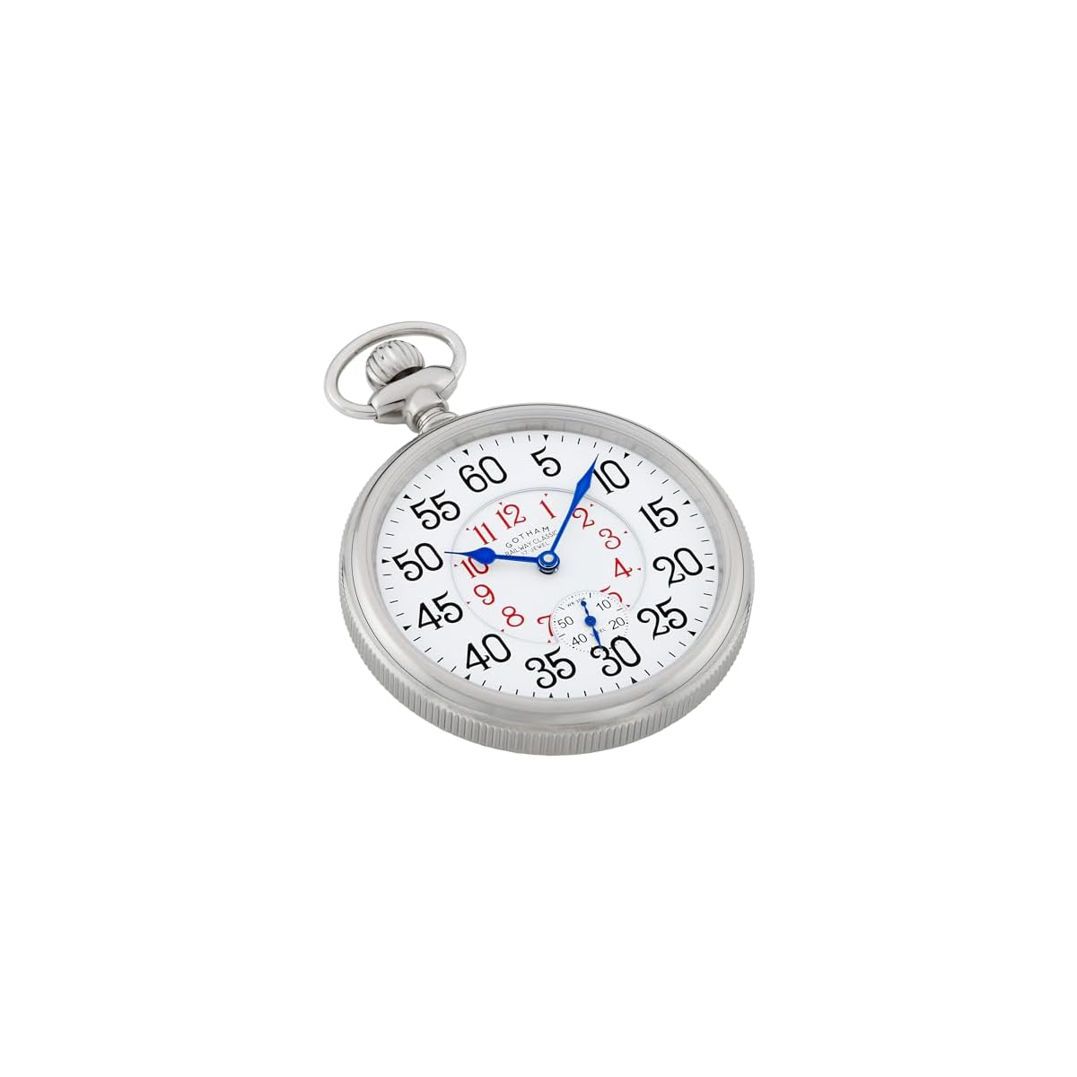 Gotham Men’s Stainless Steel Mechanical Hand Wind Railway Classic Nostalgia Series Pocket Watch # GWC14124S, Silver, Pocket Watch