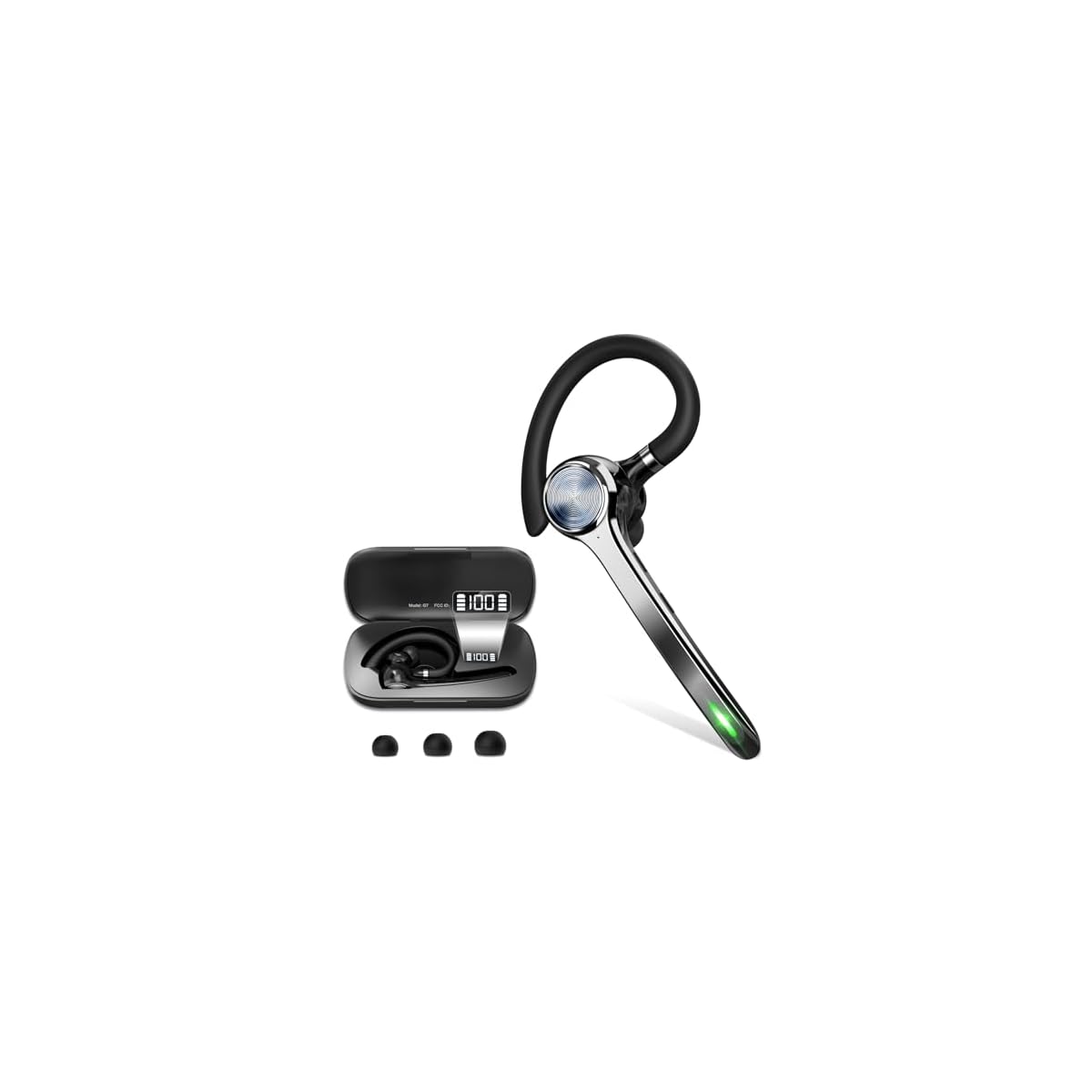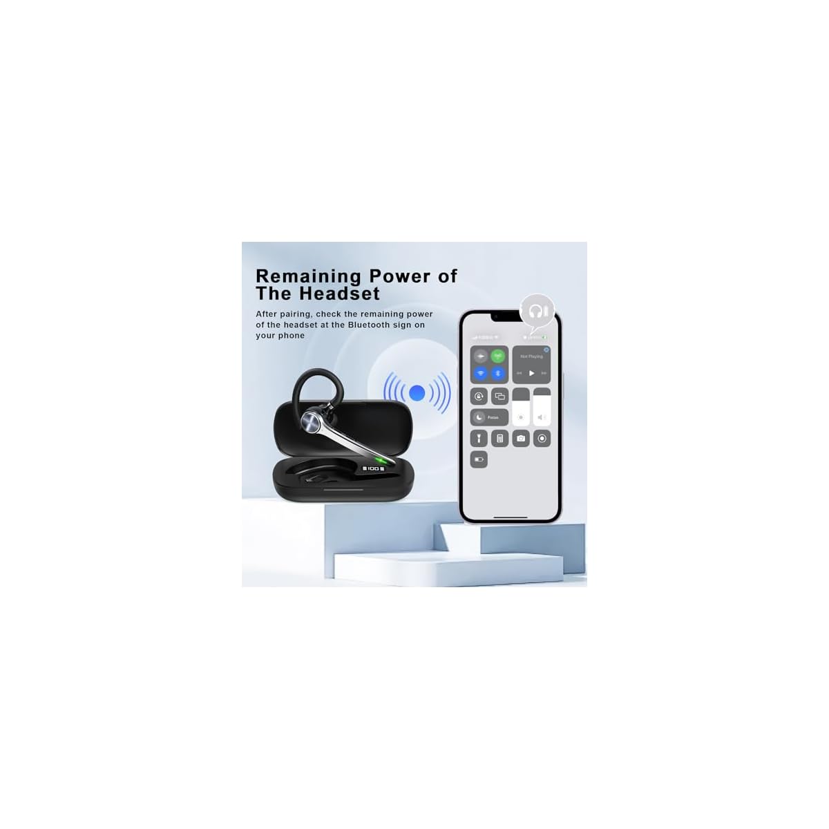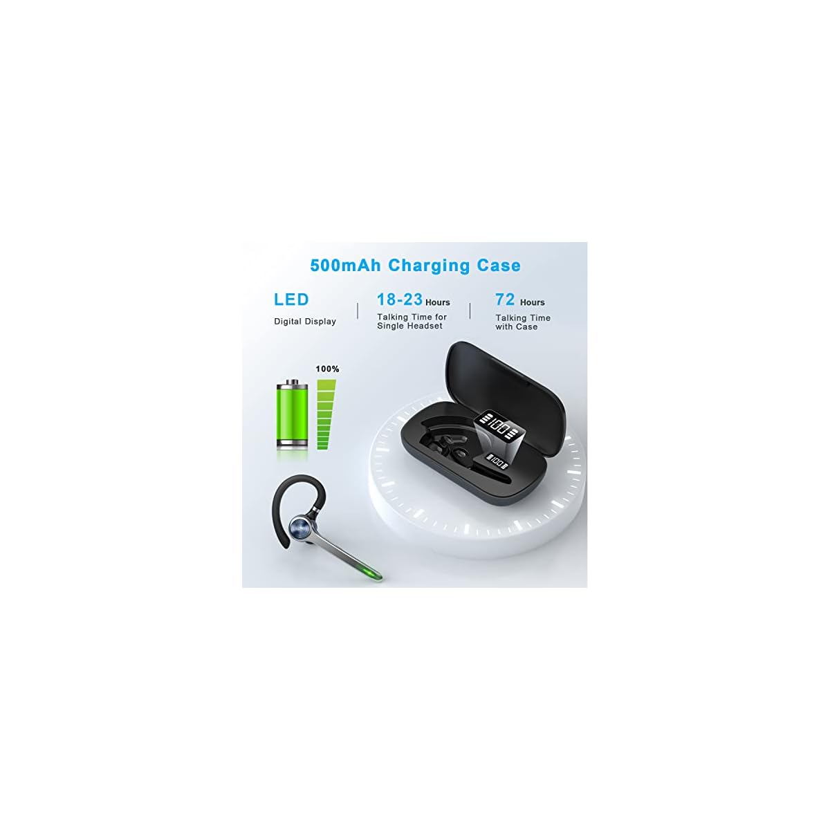 HEIBAS Bluetooth Headset, Wireless Bluetooth Earpiece with 500mAh Charging Case 72 Hours Talking Time Built-in Microphone for iOS Android Cell Phone, V5.1 Hand-Free Headphones for Office, Trucker