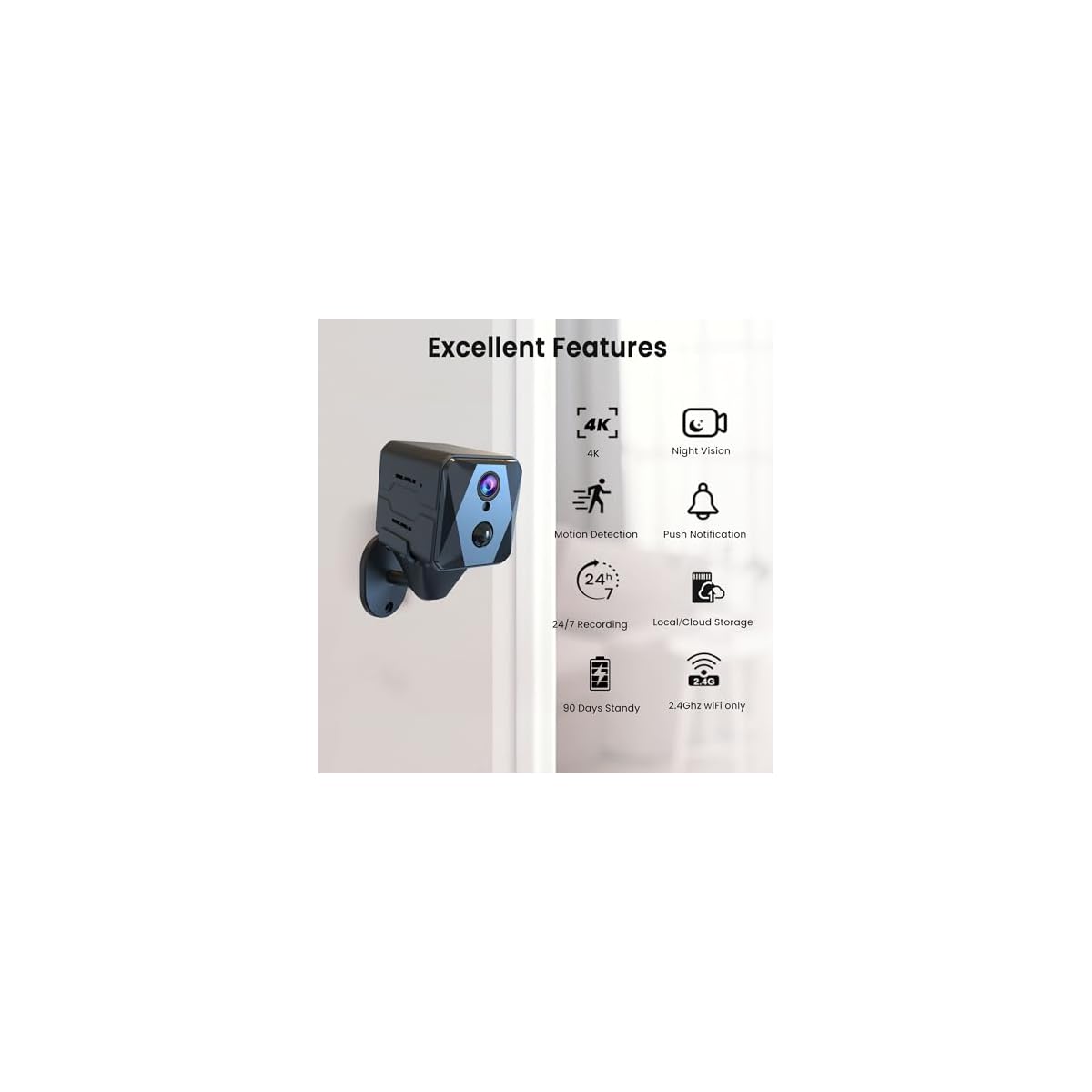 【4K Video & Upgraded Night Vision】This mini camera captures clear image with 4K high-definition resolution. The auto night vision function brings 24/7 surveillance, with 140° wide-angle, the lens provide broad coverage, making it an ideal camera for indoor security.
