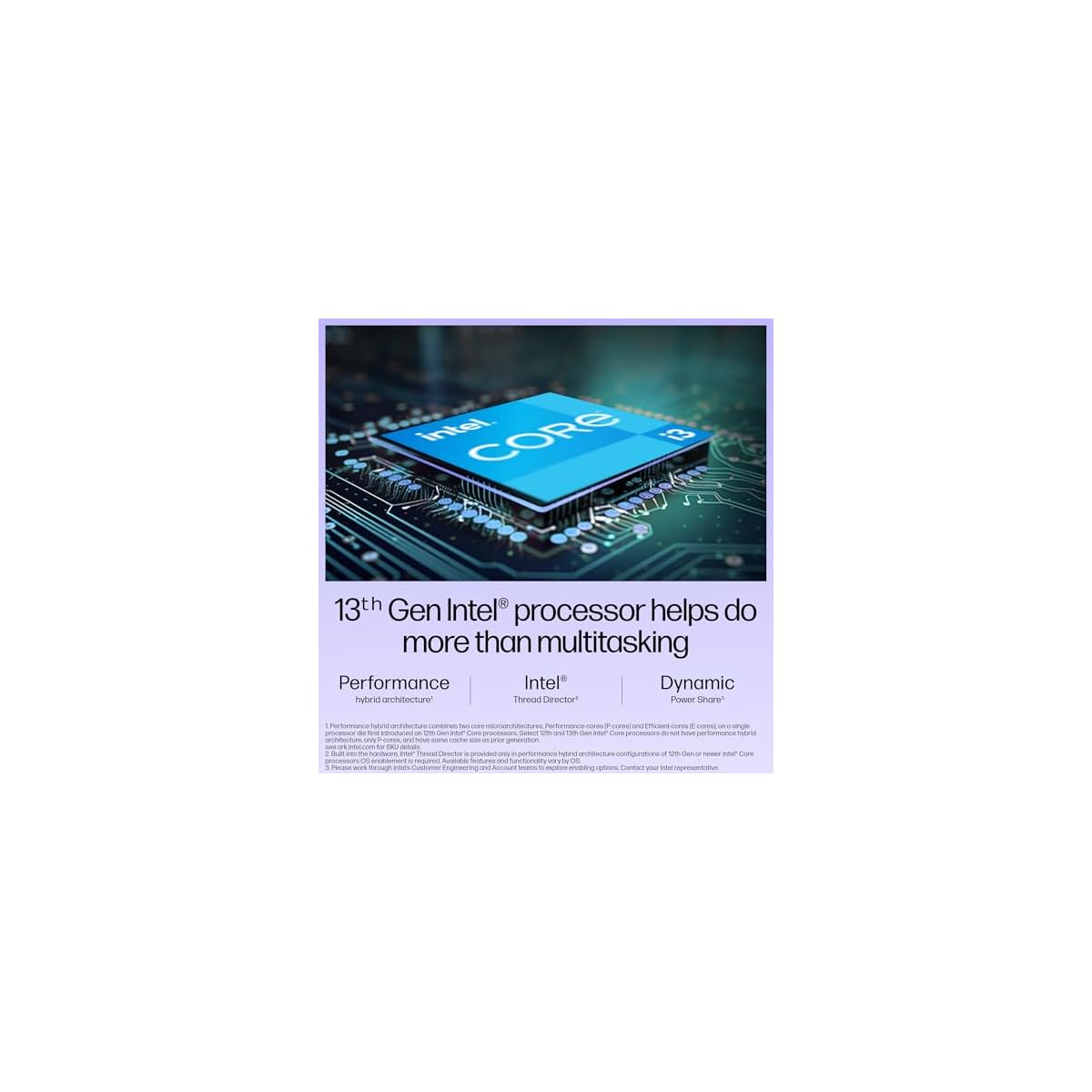 【Intel Iris Xᶱ Graphics】micro-edge; Full-size, backlit, soft grey keyboard with numeric keypad, HP Imagepad ; Realtek Wi-Fi 6 (1×1) and Bluetooth 5.3 wireless card; 1 USB Type-C 5Gbps signaling rate (supports data transfer only and does not support charging or external monitors); 2 USB Type-A 5Gbps signaling rate; 1 AC smart pin; 1 HDMI 1.4b; 1 headphone/microphone combo
