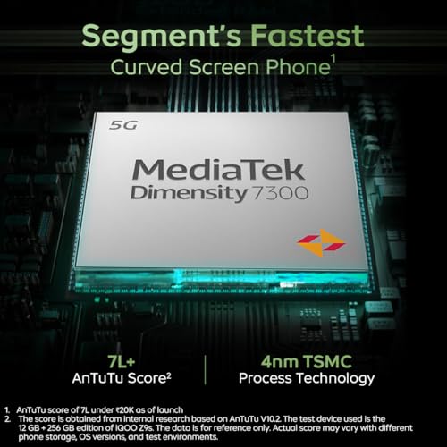 PROCESSOR : Powered by MediaTek Dimensity 7300 with 702K+ AnTuTu Score, 4nm TSMC Octa-core CPU architecture which gives you effortless multi-tasking. experience