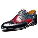 Jepsengord Men’s Dress Shoes Genuine Leather Two Tone Oxford Shoes Wingtip Brogue Formal Business Derby Shoes for Men