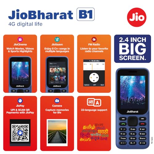 BEST TRAVEL COMPANION – JioBharat is the perfect travel companion due to its excellent features, light weight and durability, come with 23 Indian Language Support & long lasting battery life of 2000 mAh