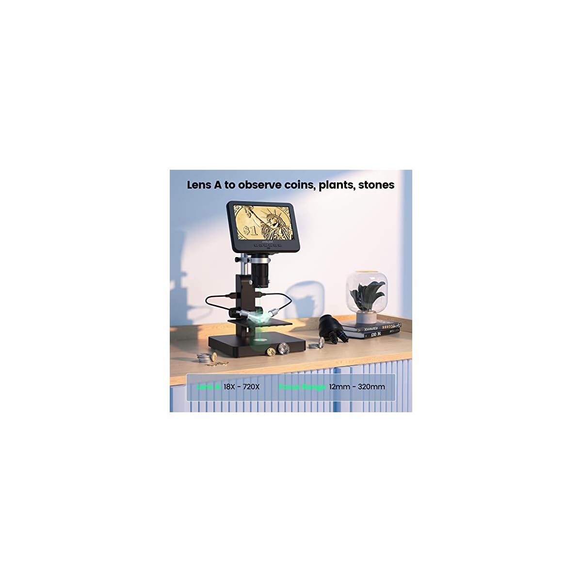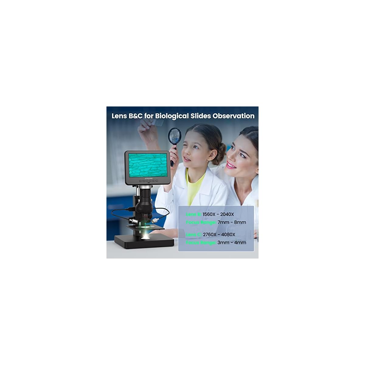 JOYALENS JL246PS 3 Lens HDMI Digital Microscope, 7 Inch LCD Microscope 4000X UHD 2160P, Coin Microscope for Full Size Error Coin, Biological Microscope with Prepared Slides, Windows PC Support, 32GB
