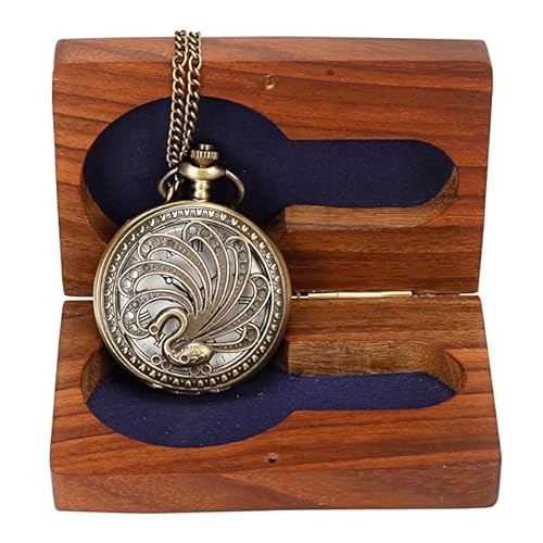 Kartique Vintage Style Pocket Watch with Intricate Peacock Design, Antique Finish, Roman Numerals, and 30-Inch Chain, Ideal for Gifting and Collecting