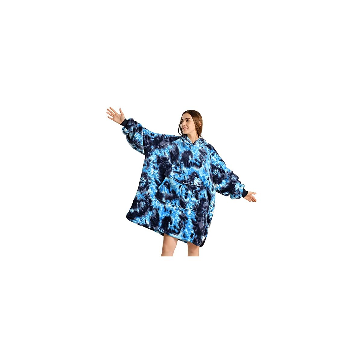 Krifey Wearable Blanket Sweatshirt for Women and Men,Oversized Light Microfiber Big Blanket Hoodie, One Size Fits All((Dark Blue tie-dye)