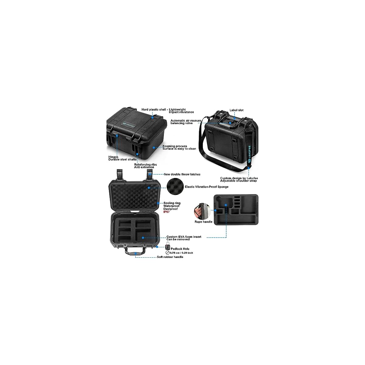 【Strong Protection】Abrasion and Have an effect on Proof PP Outer Shell. Internal Filled Elastic Sponge & Custom EVA Foam Inserts. Waterproof & Dustproof IP67,Anti-Have an effect on, Anti-Scratch. This storage offer protection to case contains: 1x Shoulder Strap, Non-slip silicone take care of, 2x Silent spring latches, Pressure equalizing valve. Stainless steel shaft, strong and durable. Operating temperature range: -40℃ ~ +65℃ (-40℉ ~ 149℉),Ideal for Out of doors Adventures, Such as Hiking, Skiing, Water Sports,Extreme sports.