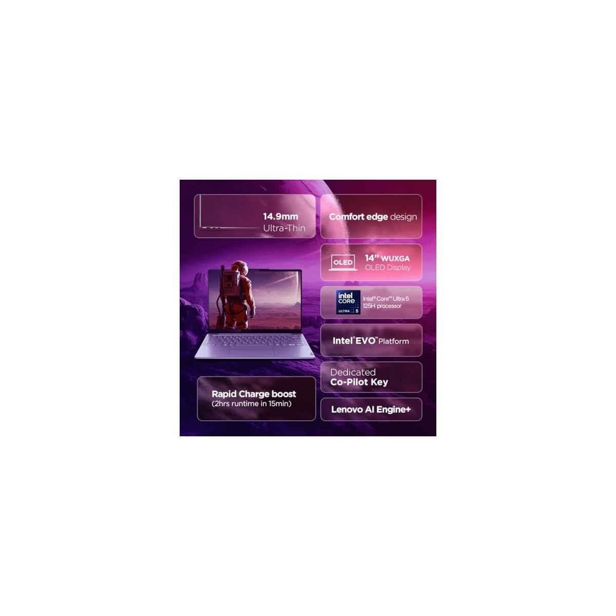 Lenovo Yoga Slim 7 Intel Core Ultra 5 125H Built-in AI 14″(35.5cm) WUXGA-OLED 400Nits Laptop (16GB/512GB SSD/60Hz/100% DCI-P3/Win11/MSO 21/1Yr ADP Free/Alexa/3 month Game Pass/Grey/1.39Kg), 83CV003MIN
