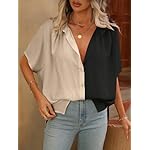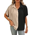 PRODUCT DETAIL: This women shirt top comes with batwing short sleeve, a collar neck with the front closure button, and two tone color block pattern shirts for women stylish western