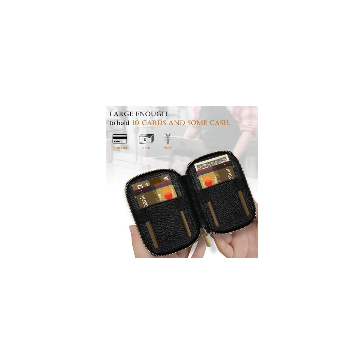 Large Capacity. 4 card holders easily contain 10 cards or cash for day by day need, which has zipper closure keeping the whole thing secure. There’s no want to take a bulky purse anymore when going out