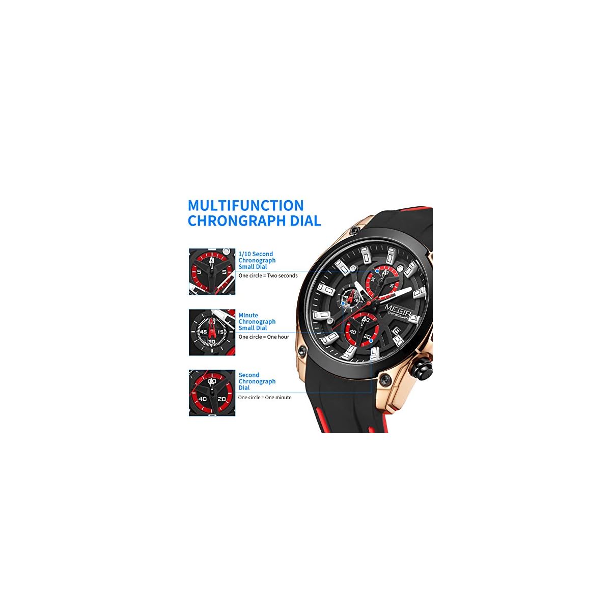 MEGIR Men’s Analogue Sport Chronograph Luminous Quartz Watch with Fashion Silicone Strap