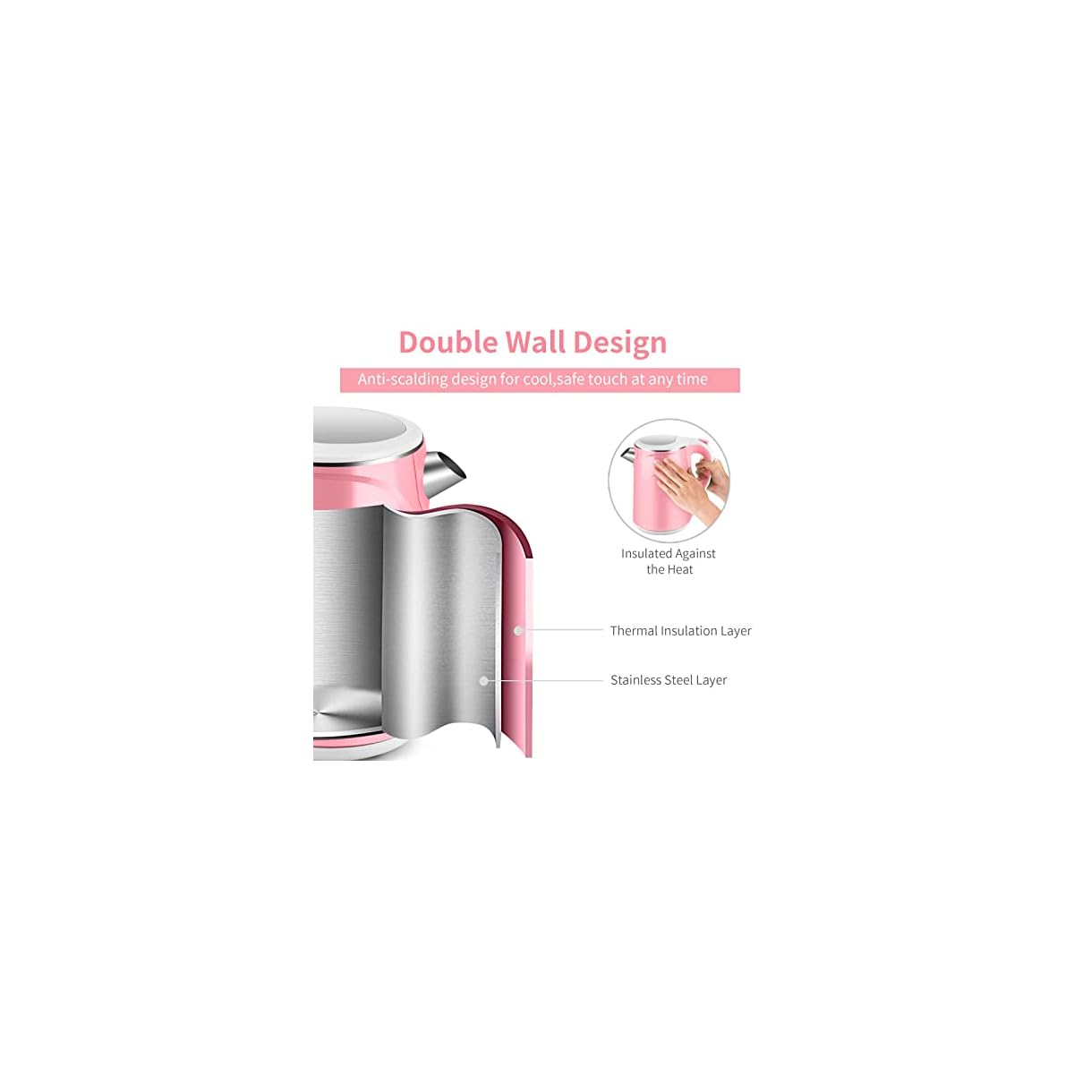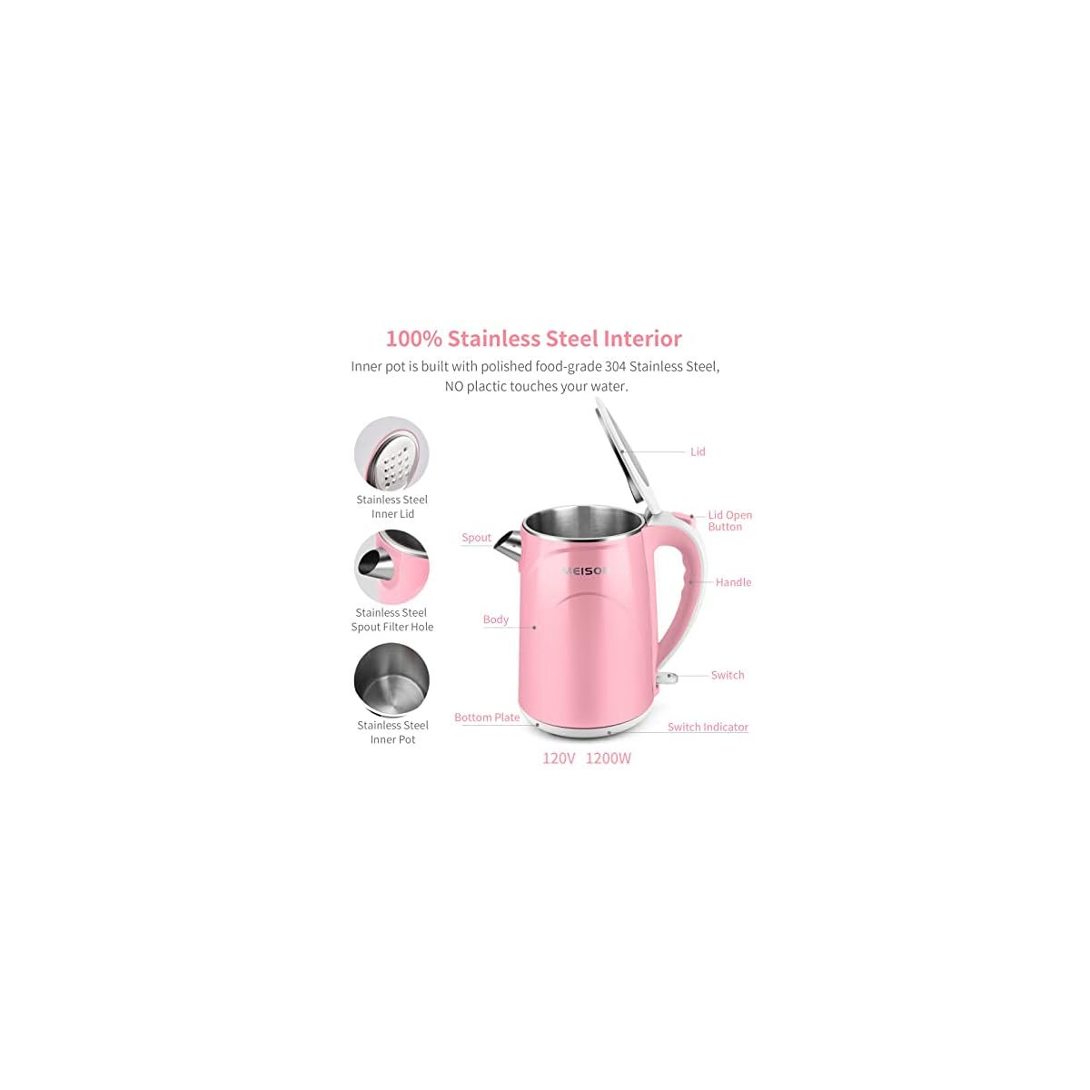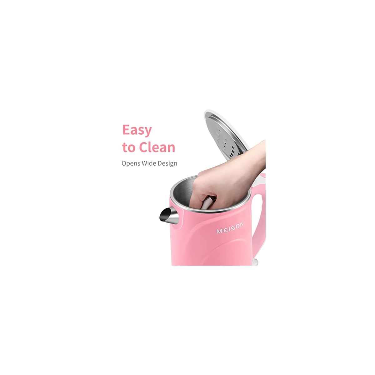 MEISON Electric Kettle, 1.5 L Double Wall 100% Food Grade Stainless Steel Interior Water Boiler, Coffee Pot & Tea Kettle, Auto Shut-Off and Boil-Dry Protection, Cordless, 2 Year Warranty