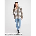 Unique design: chunky warm outwear coat, soft fuzzy fleece, high lapel collar, oversized boyfriend fit, half zip up, color block plaid pattern, baggy basic jacket coats, slouchy style.