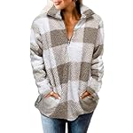 MEROKEETY Women’s Plaid Sherpa Fleece Zip Sweatshirt Long Sleeve Pullover Jacket