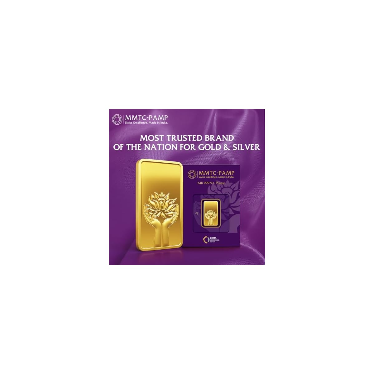MMTC-PAMP 999.9+ Purity 24K 2gm Lotus Yellow Gold Bar