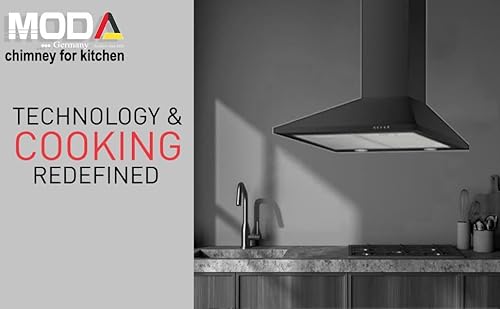 Moda Germany 60 cm 1000 m³/h High Suction Power Wall Mount Black Hood Kitchen Chimney (CLASSIC-60, Push Button Control, Baffle Filter, Black)
