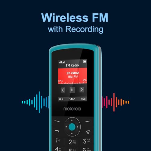 Motorola All-New A10 Dual Sim keypad Phone with Voice Feature | Long-Lasting Battery Backup | Wireless FM with Recording | Bluetooth Connectivity | Auto Call Recording | Teal Blue