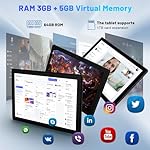 💾【8GB RAM+64GB ROM+1TB Expandable】The tablet comes with 8GB of RAM (3GB + 5GB expandable) and 64GB of high-speed ROM, providing an outstanding multitasking experience, allowing you to easily work, study, read, or watch movies on the tablet. This android tablet supports Micro SD/TF cards up to 1TB(NOT included), allowing you to store multimedia content such as photos, ebooks and videos etc., enabling you to use the tablet more effortlessly without worrying about storage space.