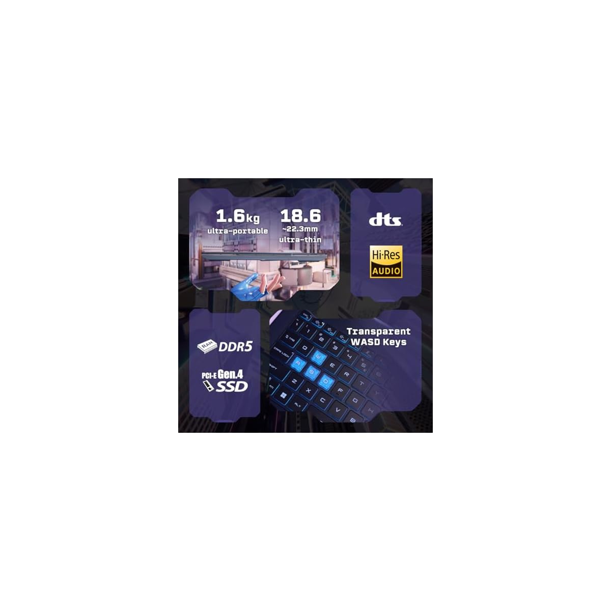 Memory & Storage: 8GBx2 DDR5 Onboard Dual Channel RAM | Storage: 512GB NVMe PCIe Gen4x4 SSD
