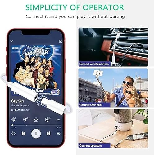 Nikolve White Lightning to 3.5mm Headphone Audio Jack Adapter for i-Phone Aux Adapter Convertor Connector 8pin Earphone & Calling Wire Audio Aux Dongle for i-Phone 14 13 12