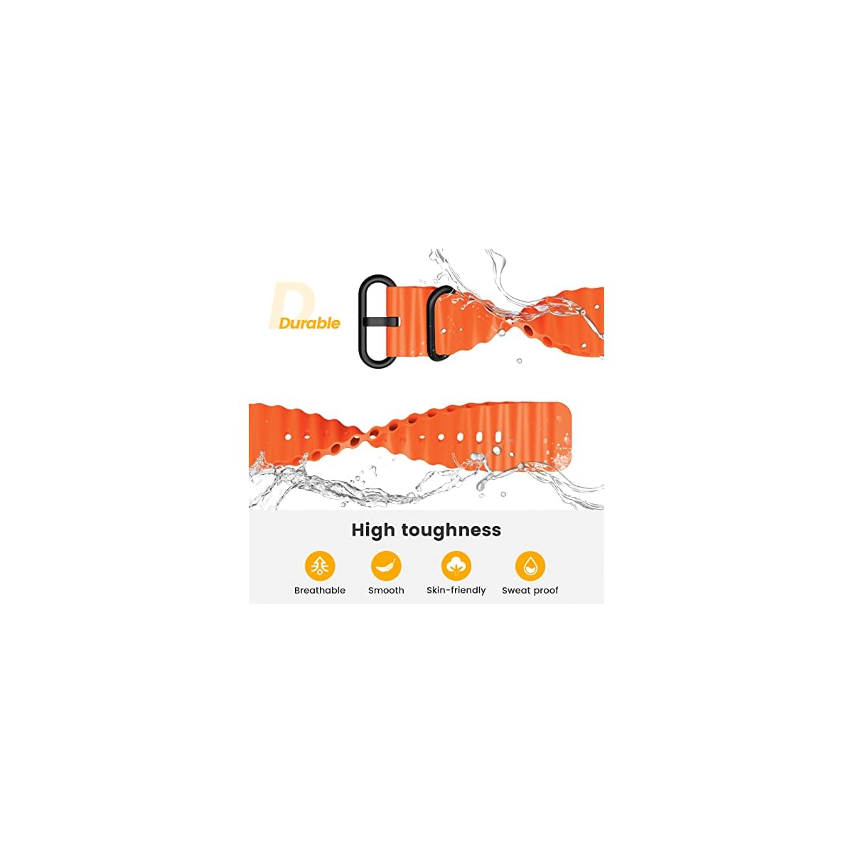 【Unique Ocean Design】The wavy surface of the strap and the hollow tubular design reduce the resistance encountered when moving in the water. The buckle is corrosion-resistant and is not afraid of frequent exposure to seawater.