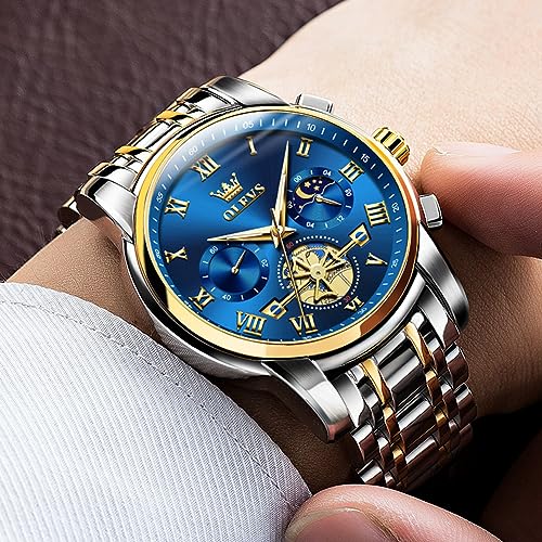 OLEVS chronograph Men’s Stainless Steel Watch (Blue Dial Silver Colored Strap)