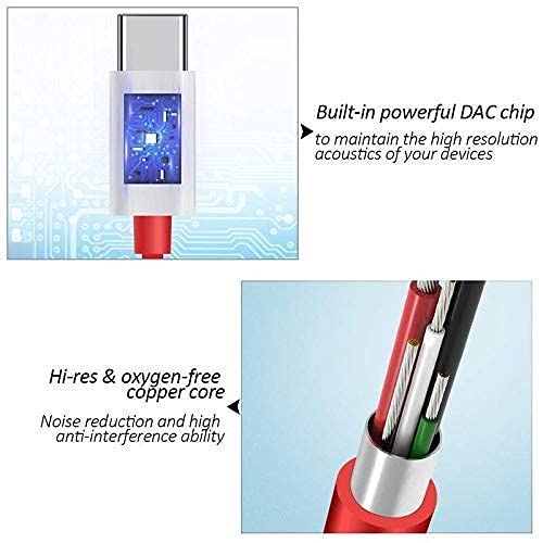 One Plus Type C to 3.5mm Jack Audio Connector,Noise Cancelling Headphones Jack Converter Audio Adapter Compatible for 12R 11/ 11R/ 10 Pro/ 10R/ 10T/ 9RT/ 9R/ 8R/ 8T/ 6/ 6T/ 7/ 7T/ Nord CE 2/ CE 3