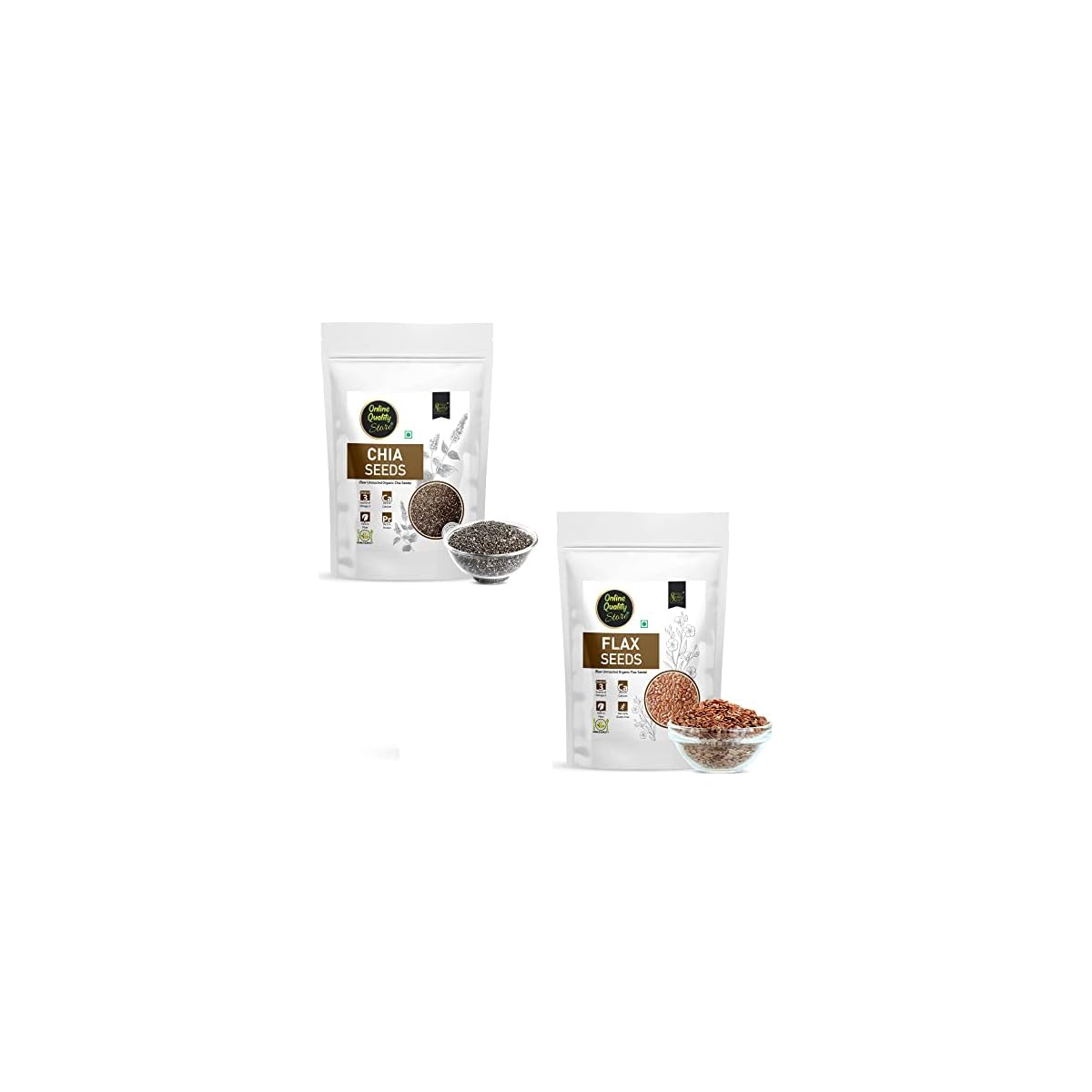 Online Quality Store Raw Organic Combo of Flax Seeds & Chia Seeds -200gm(100gm x 2 Pack) |Unroasted Mix Seeds for eating with Omega 3 and rich in Fiber, Calcium & Protien for Weight Loss|Diet Snacks