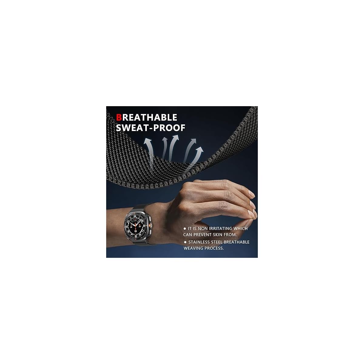 【Breathable & Comfortable】Our metal bands for Galaxy Watch 7 Ultra 47mm (not included bumper case) are made from high-quality stainless steel mesh loop with a durable strong magnetic clasp, skin-friendly and breathable, no skin rash like silicone wristbands.