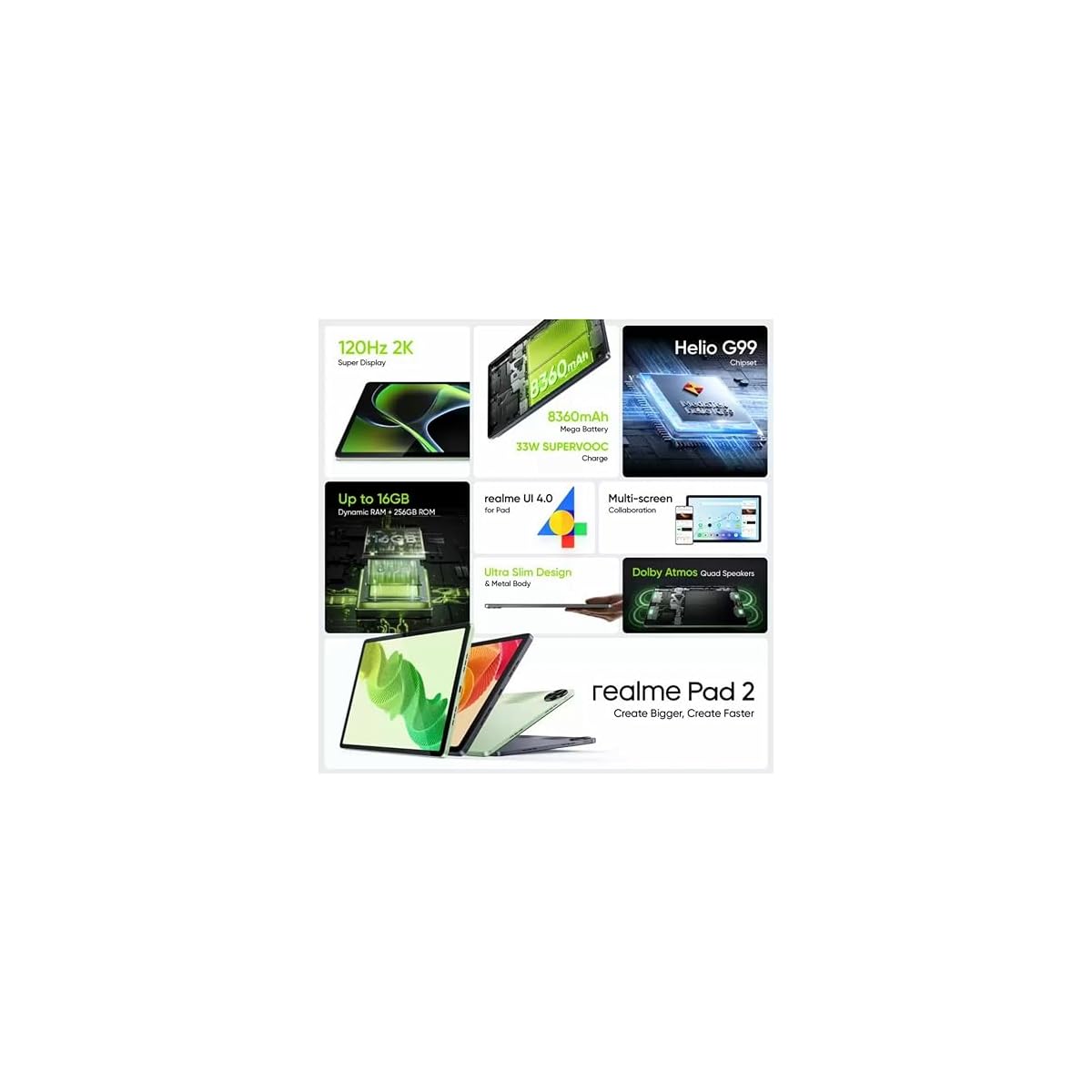 (Refurbished) realme Pad 2 6 GB RAM 128 GB ROM 11.5″ Large Display, 8360mAh Mega Battery, 7.2mm Ultra-Slim Design, MediaTek G99 Processor, 33W SUPERVOOC Charge with Wi-Fi Only Tablet