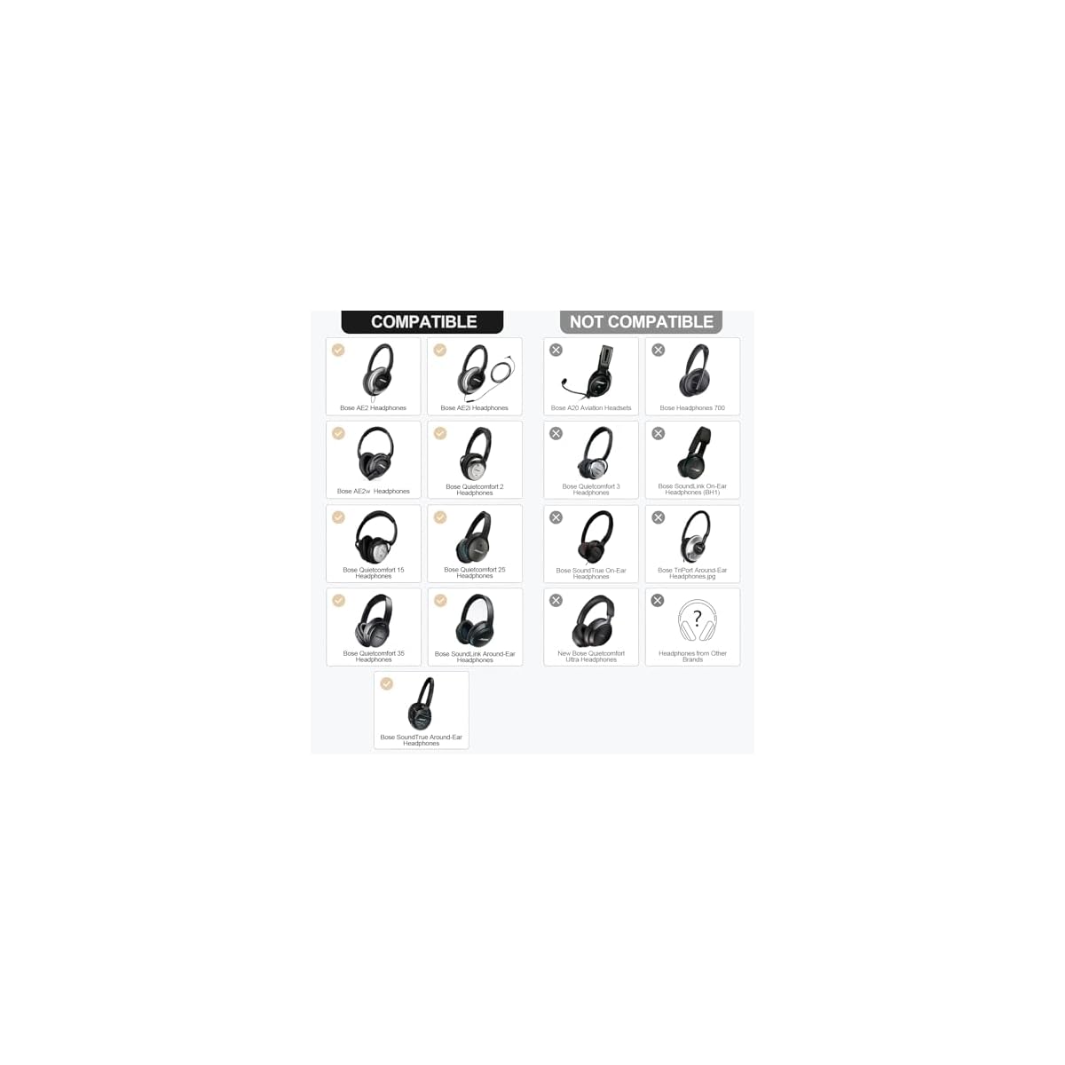 Compatible with Bose QC 2,QC 15, QC 25, QC 35, SoundTrue and SoundLink AE2 Around-Ear headphones