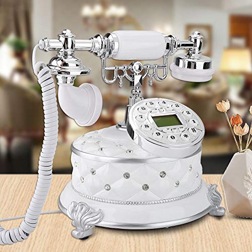 Rotary Dial Telephone,MS-8313B gem White Antique Telephone for Living Room,Bedroom,Bedside,Hotel, Home,Store, Gifts,Dialing Number ID,Electronic Calendar,Decorative Phone