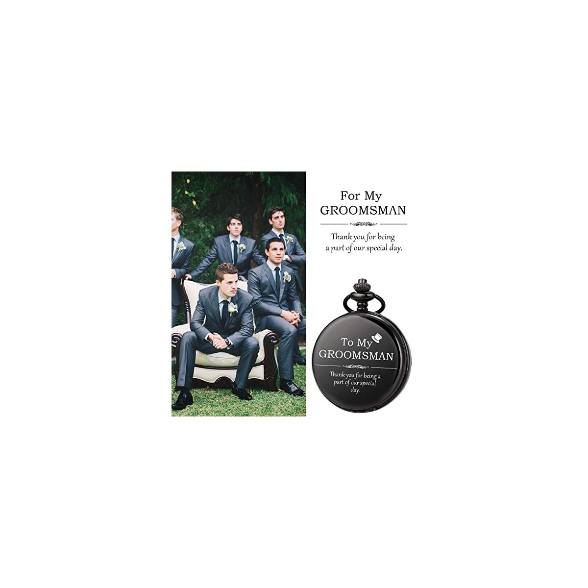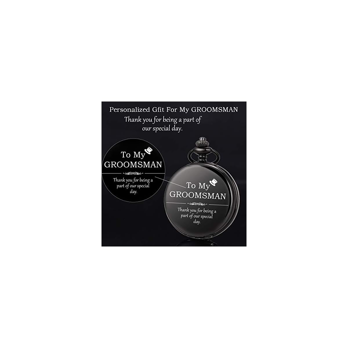 💑 【 Quality Laser Personalized Pocket Watch】 There Must Be A Unique Gift To Your Best Man On Your Big Day. Our Laser Engraved Pocket Watches Which Says “ To My Groomsman, Thanks for being a part of our special day.”