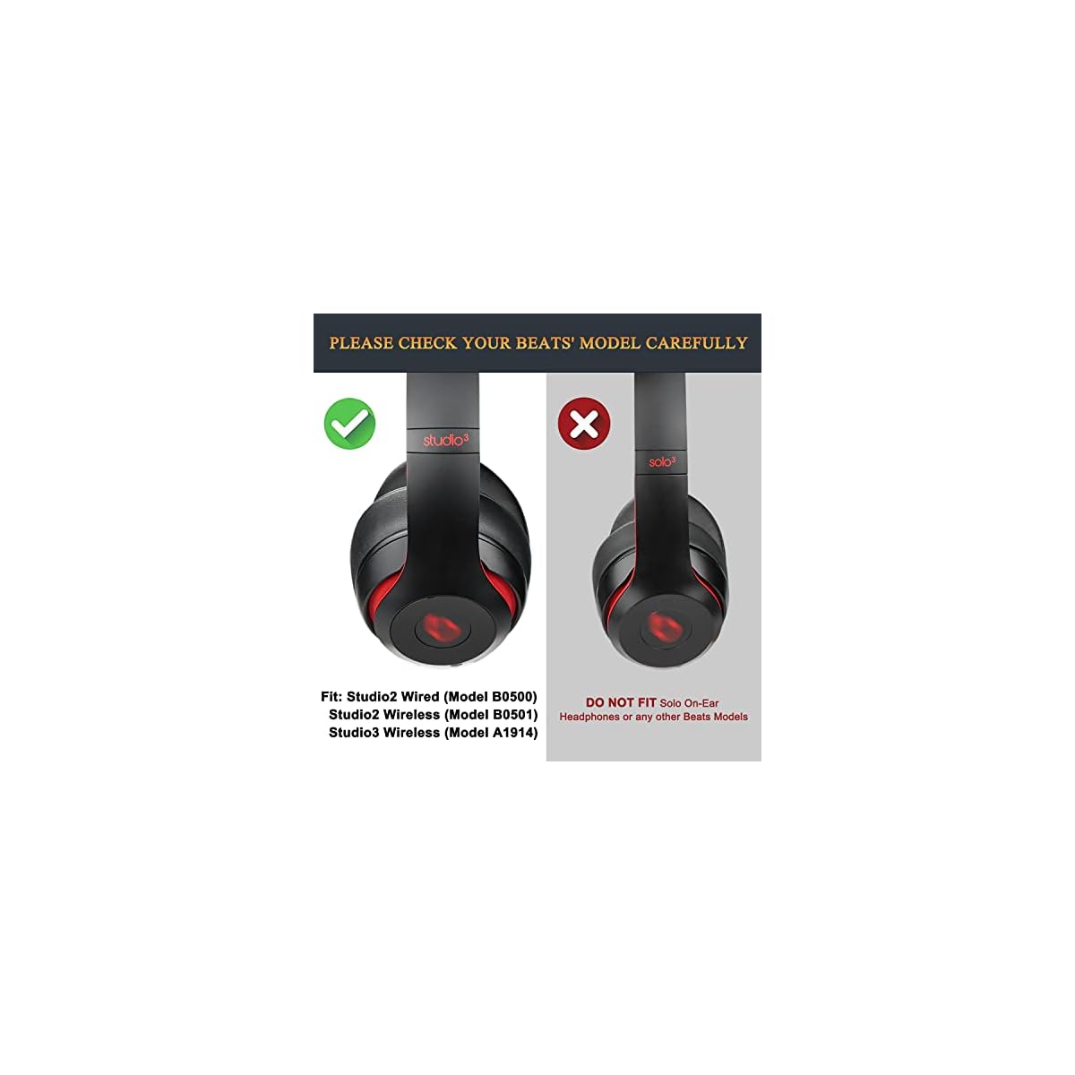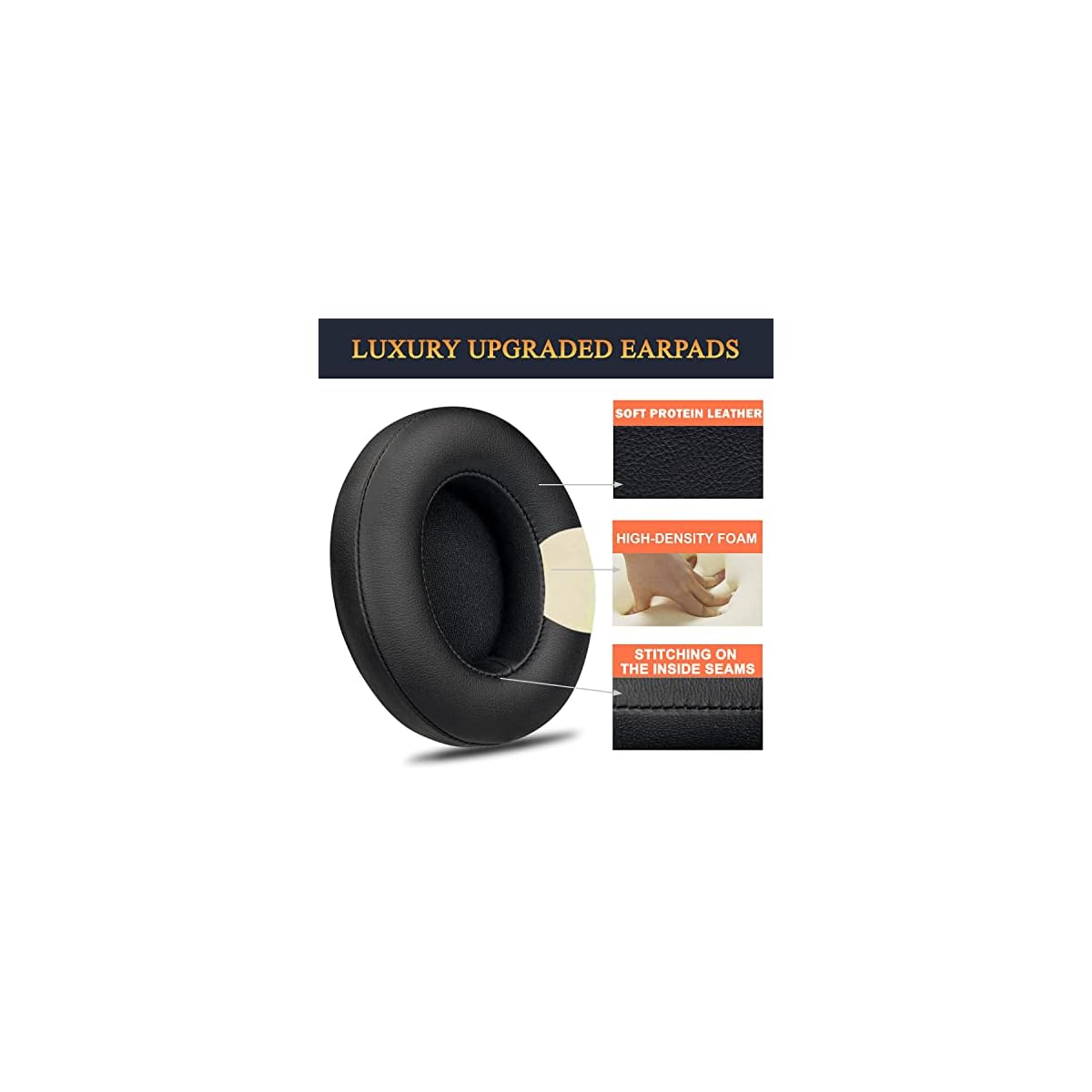 SoloWIT Professional Earpads Replacement Ear Pads Cushions for Beats Studio 2 & 3 Wireless & Wired with Soft Protein Leather, Noise Isolation Memory Foam, Stronger Adhesive