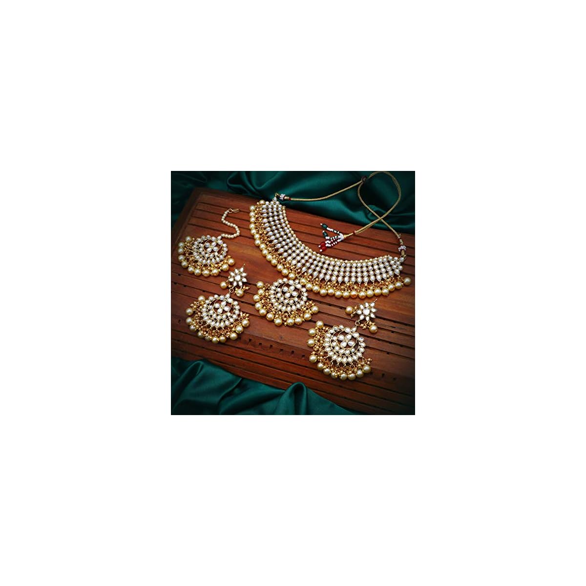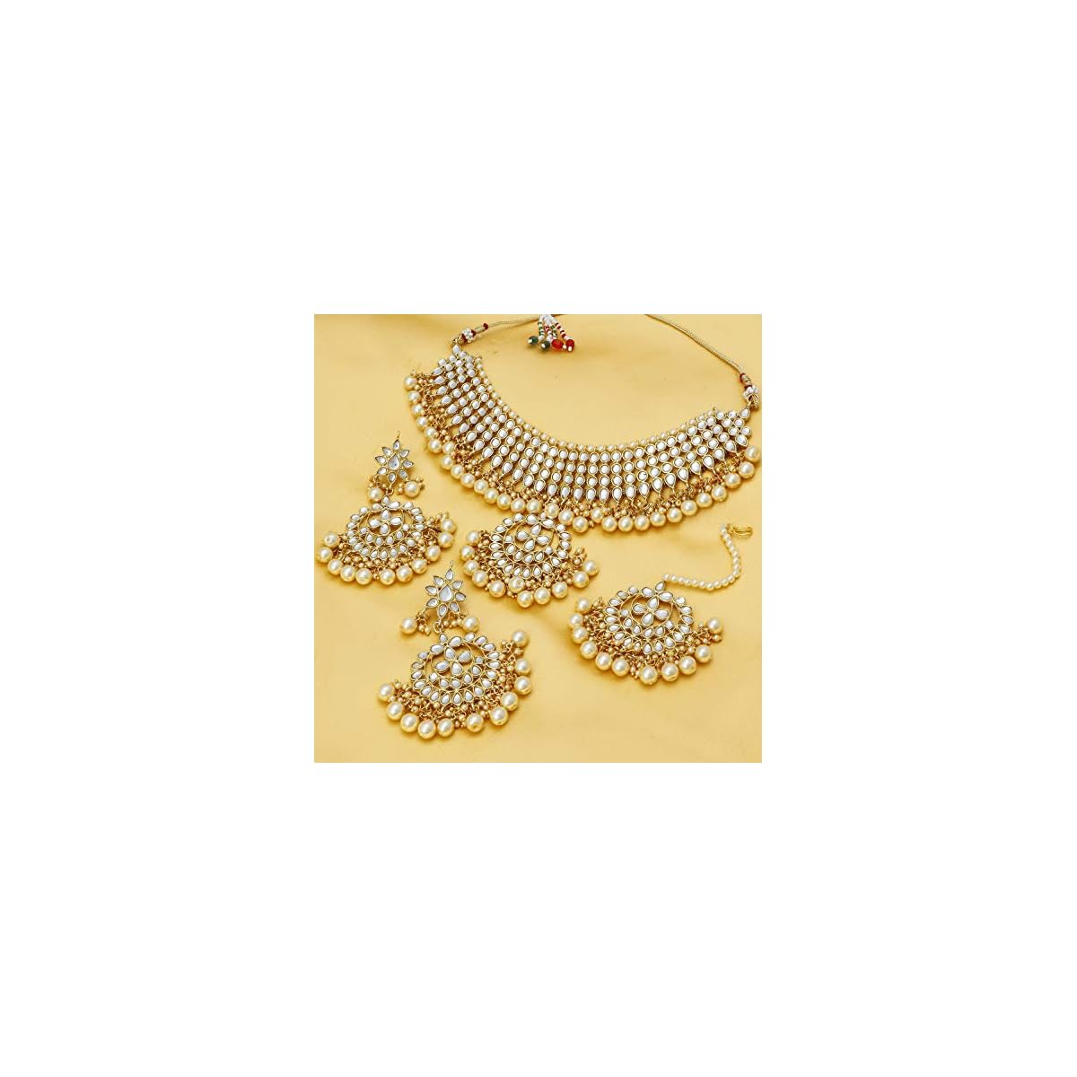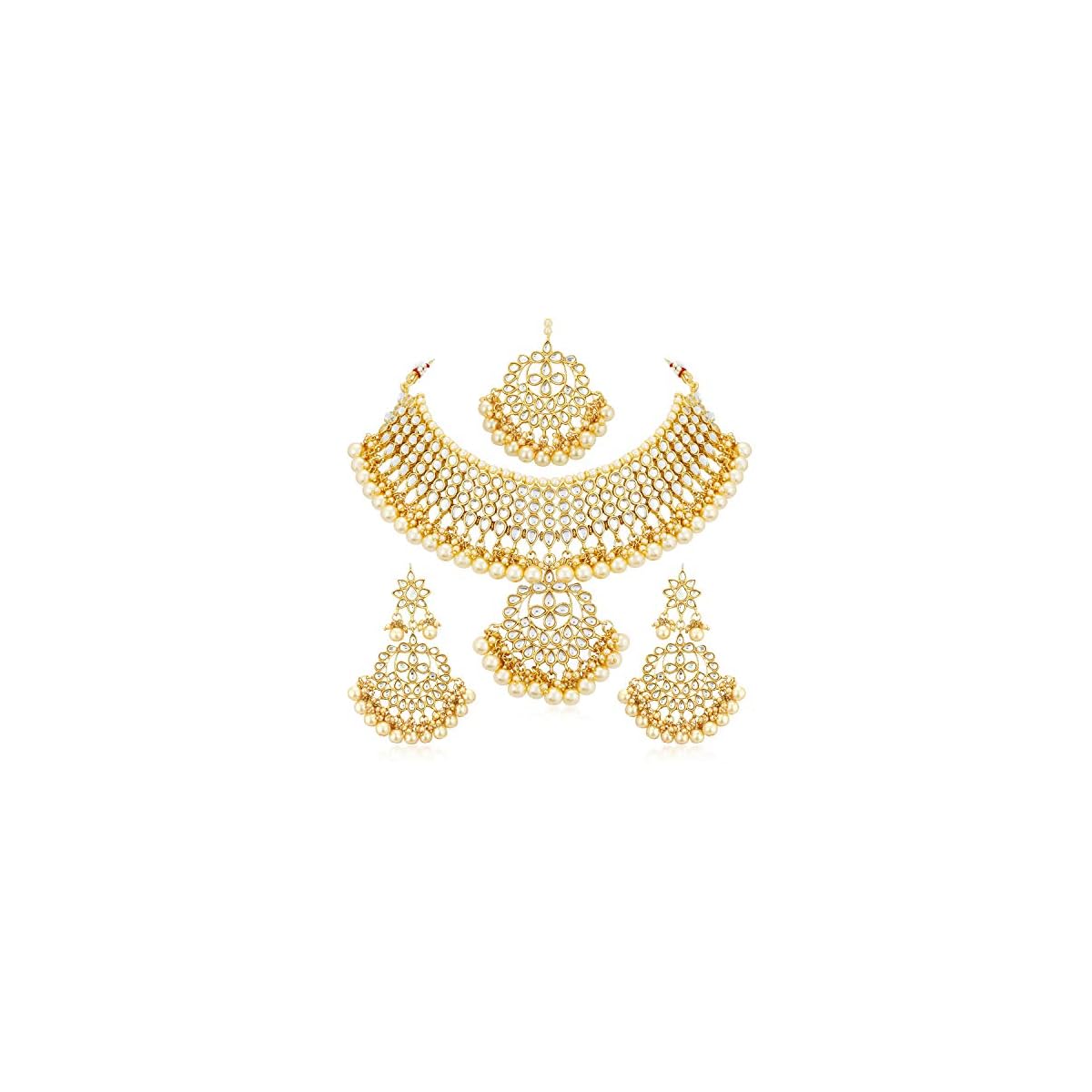Sukkhi Trendy Kundan Gold Plated Wedding Jewellery Pearl Choker Necklace Set for Women (N73544)