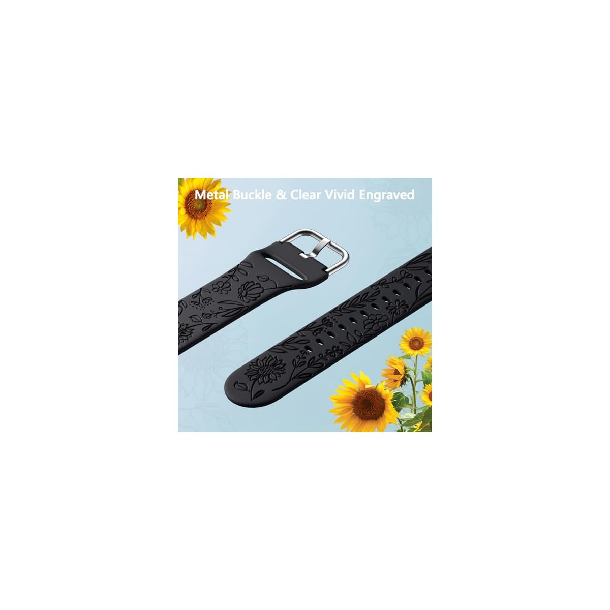 Sunflower Engraved Bands Compatible with Samsung Galaxy Watch 5/Watch 4 40mm 44mm for Women, Samsung Galaxy Watch 5 Pro 45mm/Galaxy Active 2/Galaxy Watch 3, 20mm Soft Silicone Replacement Sport Strap