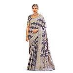 SWORNOF Women’s Lucknowi Linen cotton Woven Sarees For Women with Blouse