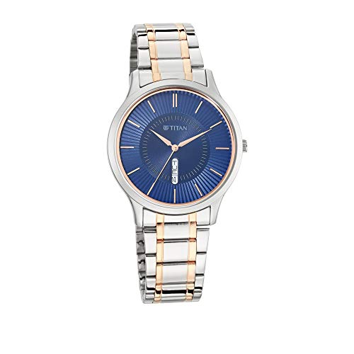 Titan Lagan Blue Dial Analog with Day and Date Metal Strap for Men-NR1845KM01