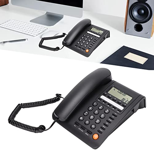 UniMarket® Corded Landline Telephone, Desktop Wired Phone 16 Bit LCD Display DTMF FSK Dual System Call Memory Black for Hotel for Office