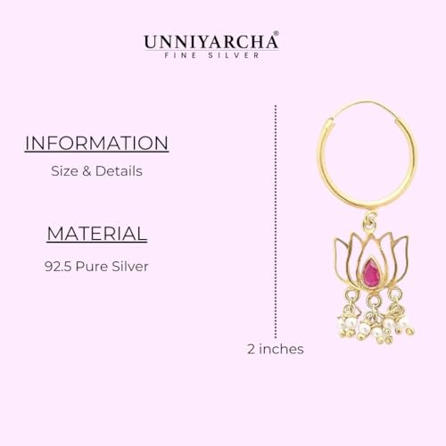 UNNIYARCHA Gold Plated Lotus Drop Bali Earrings, stud Earrings for Women Pure Silver 925, Sterling Silver Jewellery with Certificate of Authenticity & 925 Earrings for Women Silver