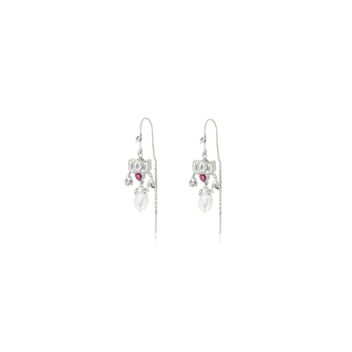 UNNIYARCHA Silver White Lotus Sui Dhaga Earring, Earring,stud Earrings for Women Pure Silver 925, Sterling Silver Jewellery with Certificate of Authenticity & 925 Earrings for Women Silver