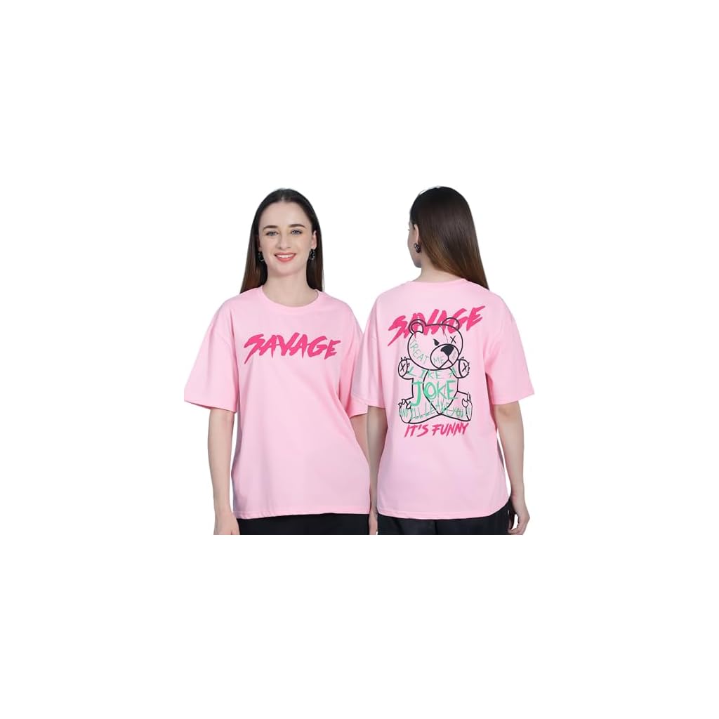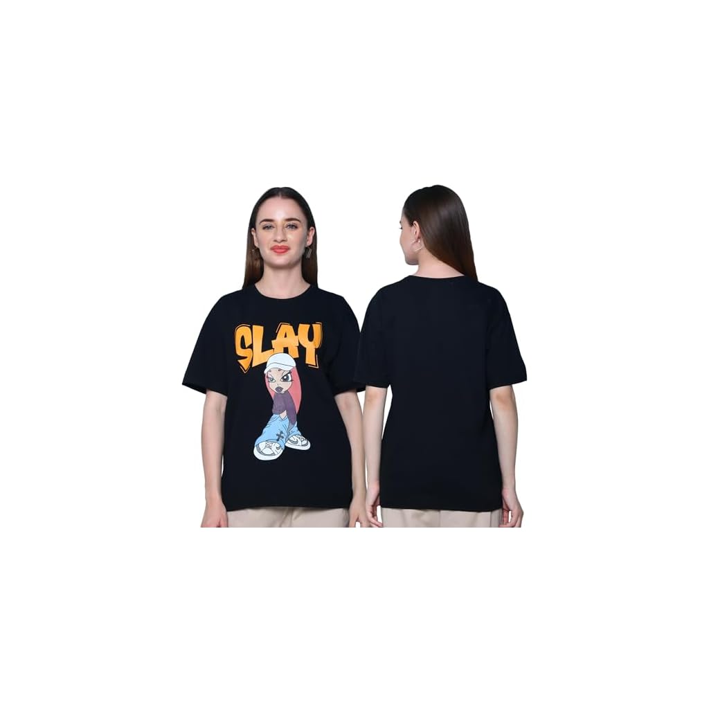 Preneum Women’s Oversized Casual Cotton T-Shirt, Half Sleeves, Round Neck, Relaxed Loose Fit Graphic Tee, Trendy Printed Design