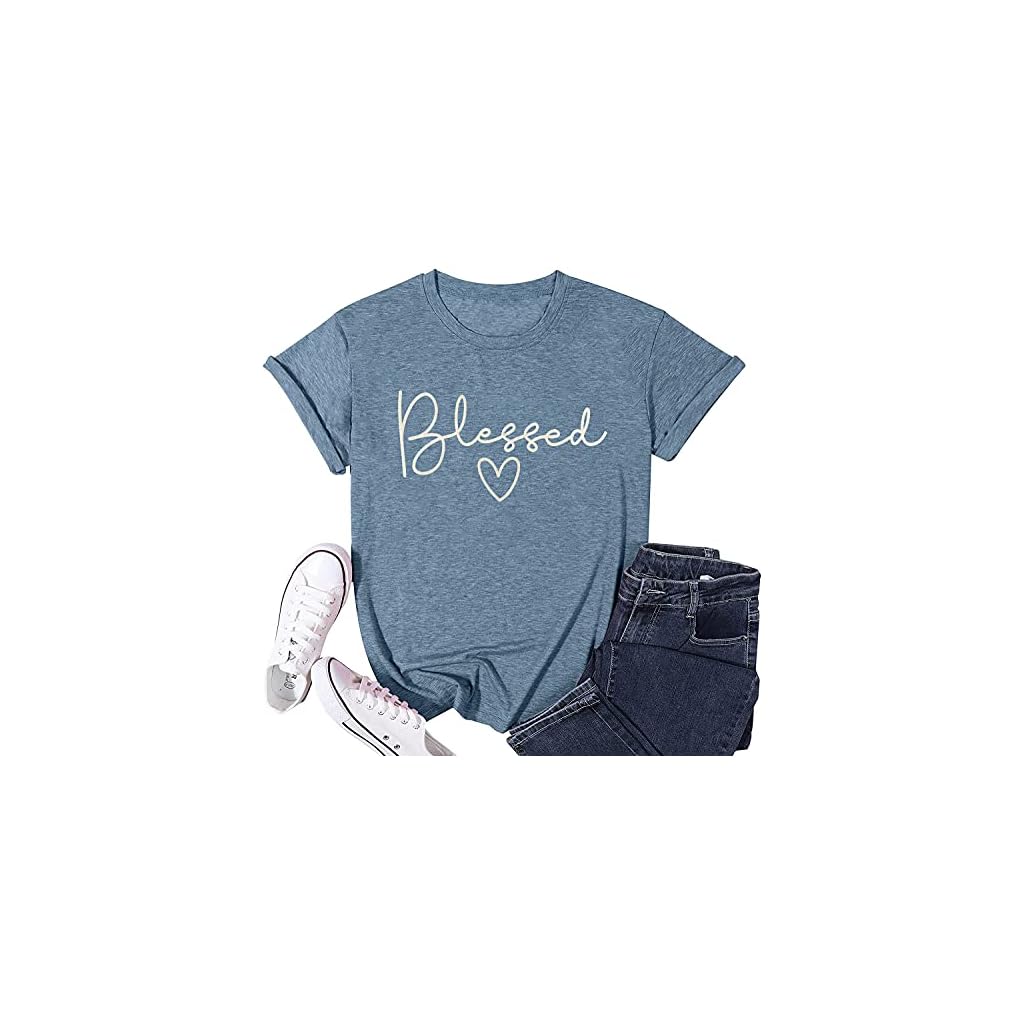 Original price was: ₹7,531.65.₹4,707.28Current price is: ₹4,707.28.Blessed T-Shirt for Women Cute Simple Sayings Heart Graphic Letter Print Shirts Casual Short Sleeve Thankful Tee Tops, Blue, Medium