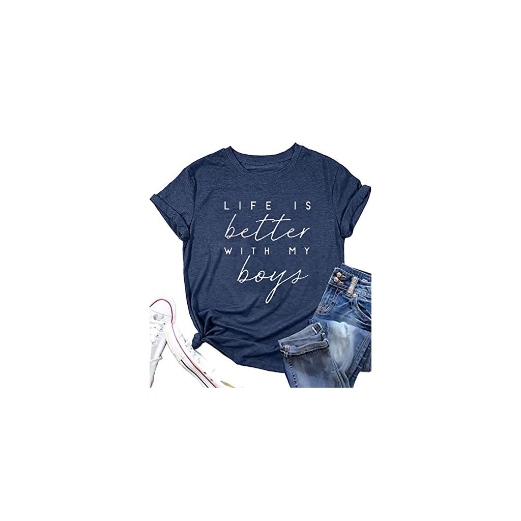 Price range: ₹443.00 through ₹449.00BOMYTAO Life is Better with My Boys Shirt for Women Mom T Shirts Funny Short Sleeve Casual Tops Tees