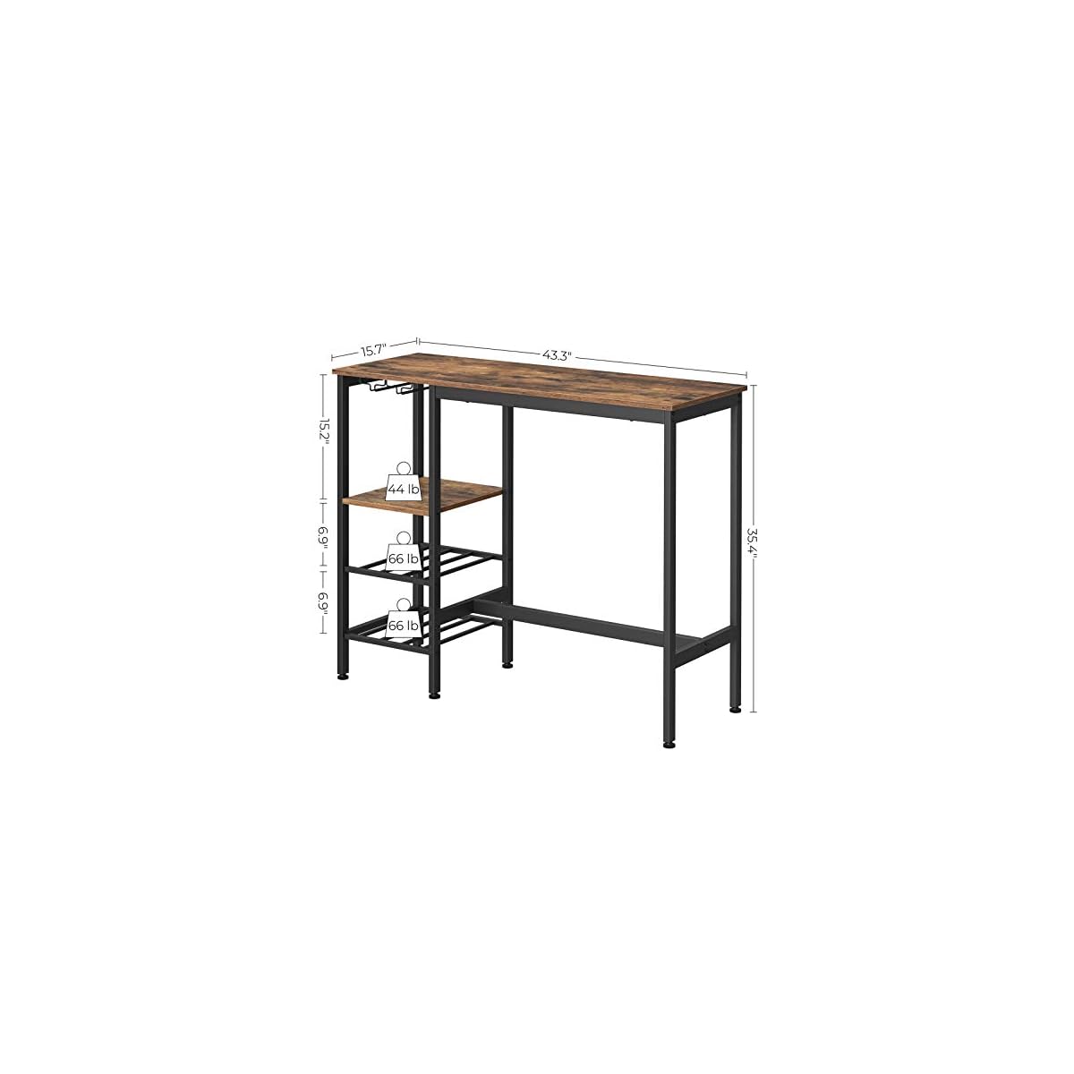 VASAGLE Narrow, Bar Table with Sturdy Metal Frame, Easy Assembly, Industrial Design, 15.7″ W, Rustic Brown