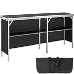VEVOR Folding Portable Bar Tradeshow Podium Table for Indoor, Outdoor, Party, Picnic, Exhibition, Includes Carrying Case, Storage Shelf and Black Skirt
