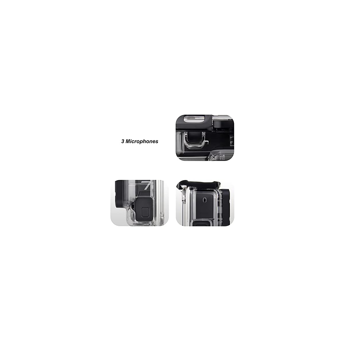 Unique: Side opening design provides Type-C Hole for charging or connecting devices easier. The open-pore ensures the built-in Micphone / Speaker / Drain Phone is unshaded.(Please remove the side door before putting in the camera.)