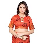 Yashika Womens Linen Blend Printed Saree With Blouse Piece(NIYATI BLACK_Free Size)