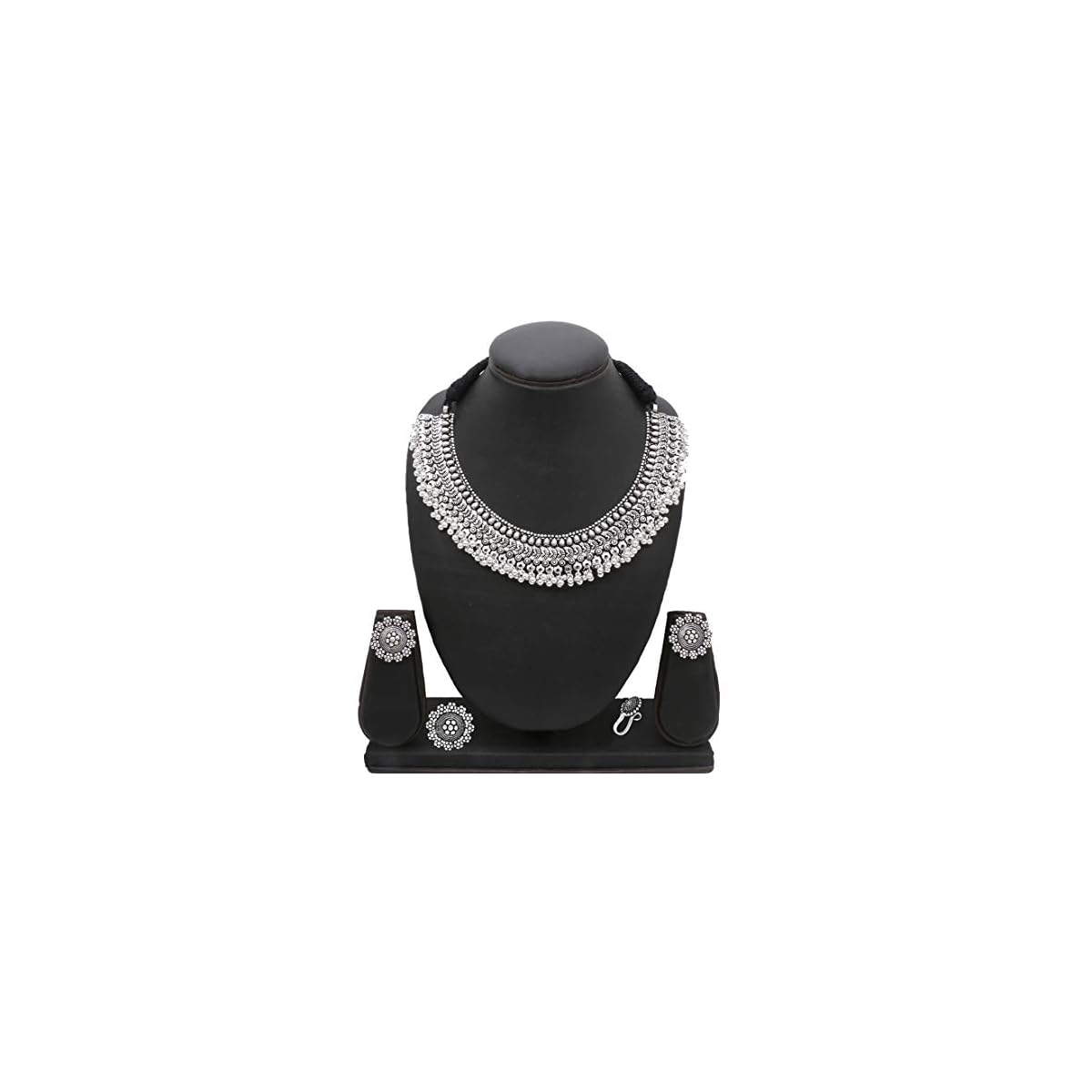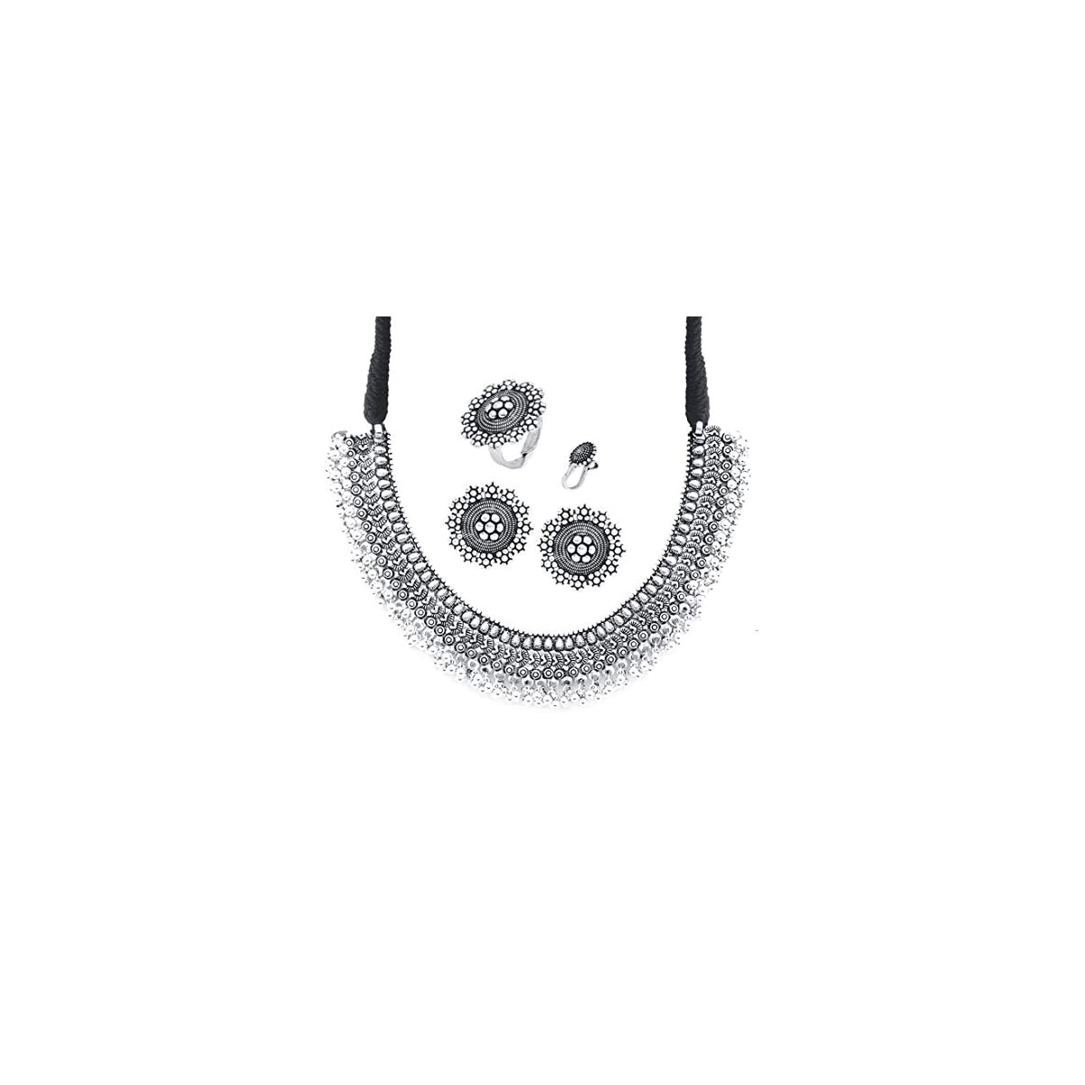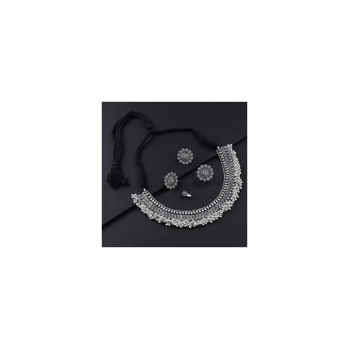 Yellow Chimes German Silver Oxidised Jewellery Set Traditional Threaded Choker Necklace Set for Women and Girls