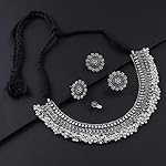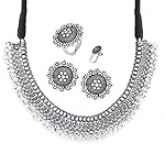 Modern, yet Ethnic Looks- German Silver Oxidized Necklace set for women Representing a classic fusion of exquisite craftsmanship and feminine elegance, Designer crafted choker Necklace set with earrings ring nose pin which is stylish contemporary Fringe Celebrity Style.Our Product is perfect for valentines Anniversary Birthday gift for Women,girlfriend,Wife. Sale_coupon_15 Price range: ₹322.00 through ₹372.00 Payment Methods: